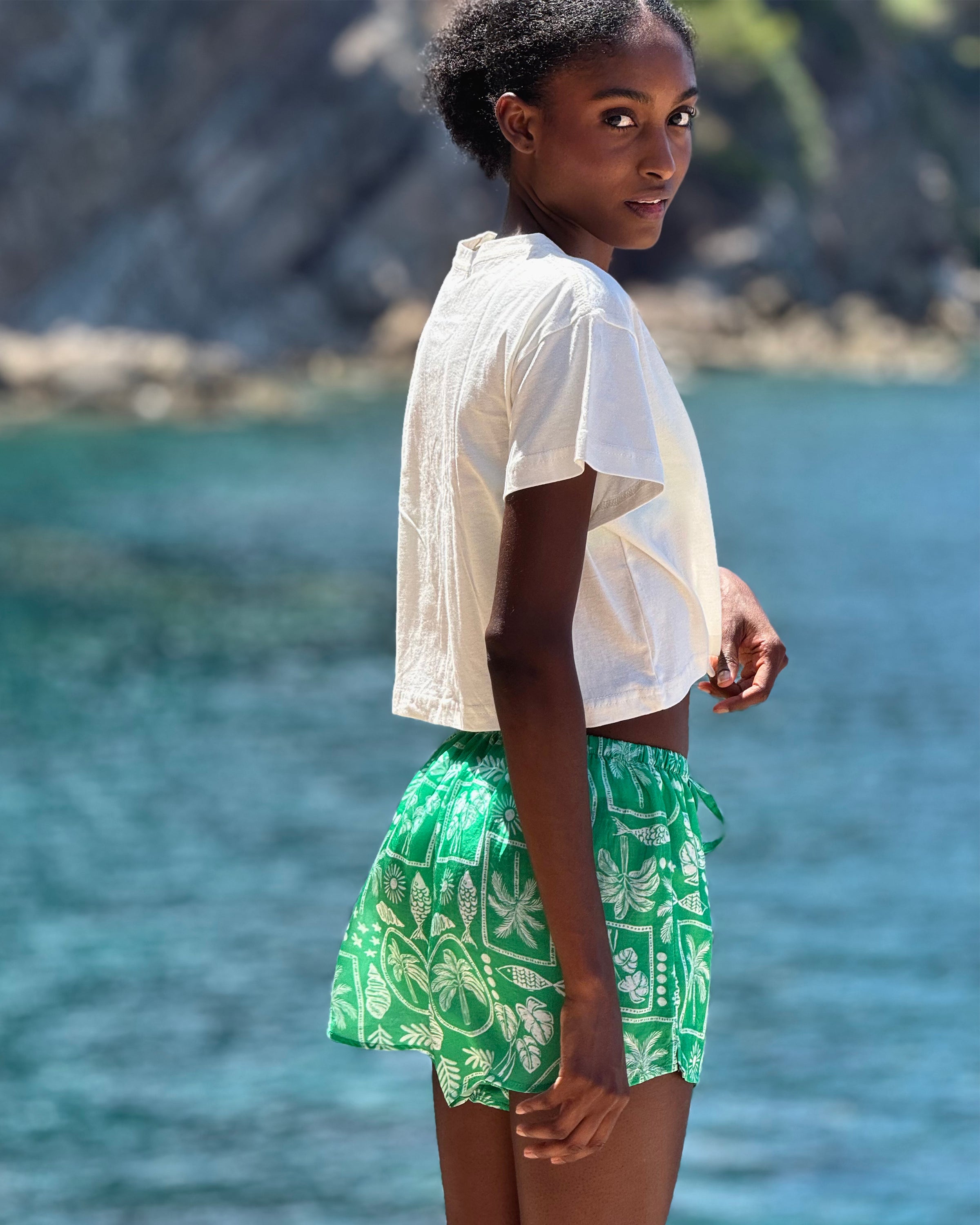 An easy, sun-ready staple designed for warm days and salty hair. The Paradiso Drawstring Shorts are crafted in our signature Mallorca print and cut in a relaxed, flattering shape that sits comfortably on the waist.